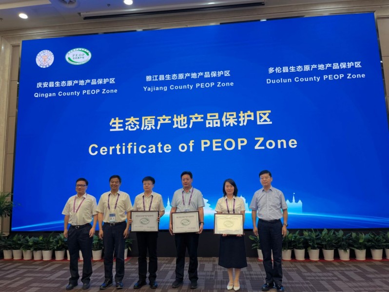与会领导为新增成为第三方生态原产地评审机构、最新评定的生态原产地产品保护以及最新认定的生态原产地产品保护区颁发证书。