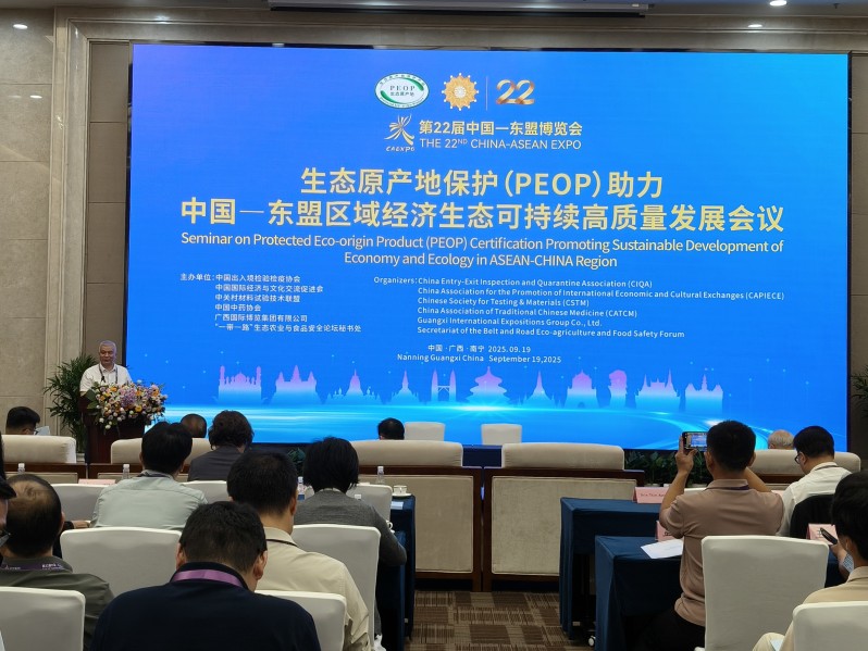 2025年9月19日,由中国出入境检验检疫协会、中国国际经济与文化交流促进会、中国中药协会、广西国际博览集团有限公司、“一带一路”生态农业与食品安全论坛秘书处联合举办的第22届中国—东盟博览会投资贸易促进活动——生态原产地保护(peop)助力中国—东盟区域经济生态可持续高质量发展会议在广西南宁举办。