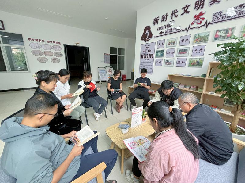 在读书分享活动中,干部职工结合工作实际畅谈阅读感悟。社区工作者小曹分享道:“诵读《论语》让我体会到修身齐家的智慧,基层服务更需要以德为本、以民为先。”青年党员小曾分享了阅读《诗经》中劳动诗歌的体会,呼吁大家弘扬脚踏实地、敬业奉献的实干精神。