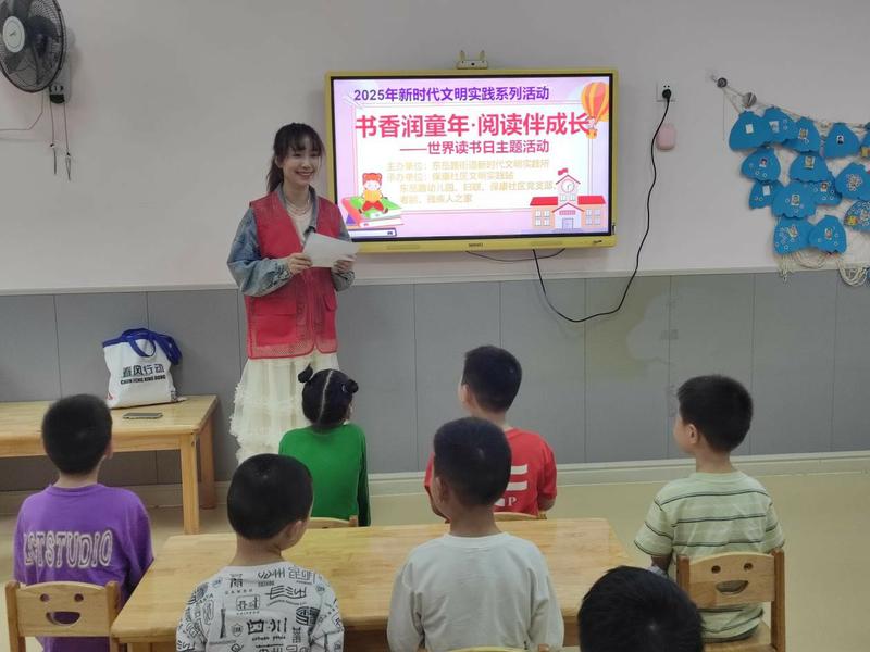 进校园:4月22日,保康社区联合东岳路幼儿园开展“书香润童年·阅读伴成长”主题活动,志愿者领读经典读物,孩子们分组分享阅读心得,培养阅读兴趣和阅读习惯,让书香伴随童年成长。