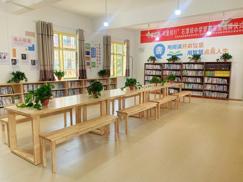 五月的风掠过湖南省湘潭市湘潭县中路铺镇的田野,带着禾苗的清香,也携着书页的墨香。在石潭坝中学一隅,阳光透过玻璃窗,洒在一排排崭新的书架上,照亮了孩子们专注阅读的脸庞,各类图书琳琅满目,孩子们饶有兴致地挑选自己心爱的书籍,沉浸在知识的海洋里。5月30日,这个特别的日子,石潭坝中学的“梦想书屋”迎来了新生。这间由“湘钢帮帮团”志愿者协会2016年创建的书屋,在九年后再次焕发光彩。当志愿者推开书屋的木门,映入眼帘的是孩子们迫不及待翻阅新书的身影——有的蹲在书架前,有的倚着窗台,还有的干脆坐在地上,每个人都沉浸在自己的阅读世界里。