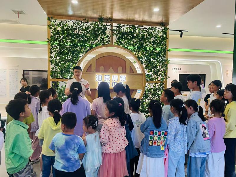 阅读活动结束后,孩子和家长们被召集过来,通过实物展示、工作人员讲解,领略了油茶的种植历史和丰富的油茶文化,近距离观看油茶籽萃取成茶油的过程,了解茶油的制作工序……家乡特色、农业知识以生动直观的方式传递给孩子们,照亮了大家对家乡文化的认知之路,将农业知识的种子播种在孩子们的心田。“这可是书屋的一大特色,别看它小,但也是大平台,融入了大发展!”陈敏自豪地说。