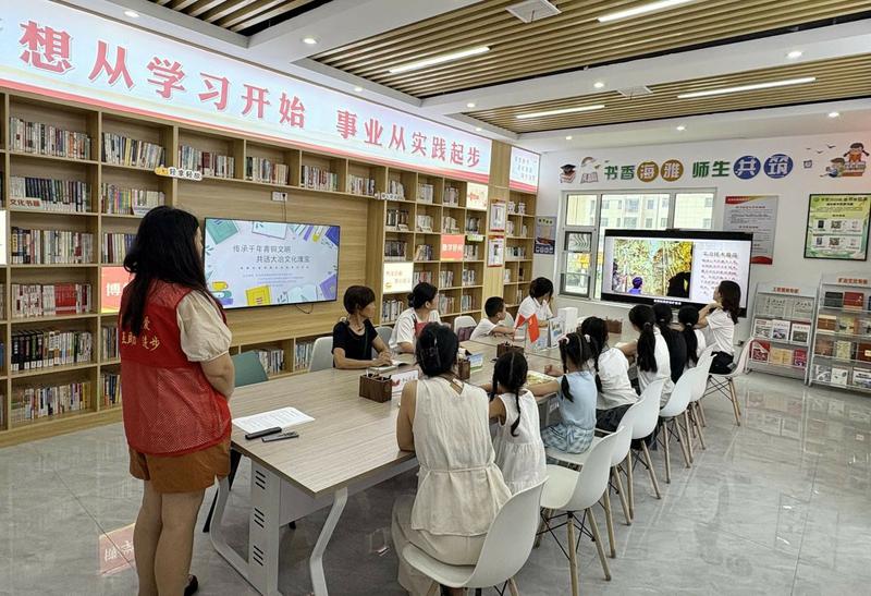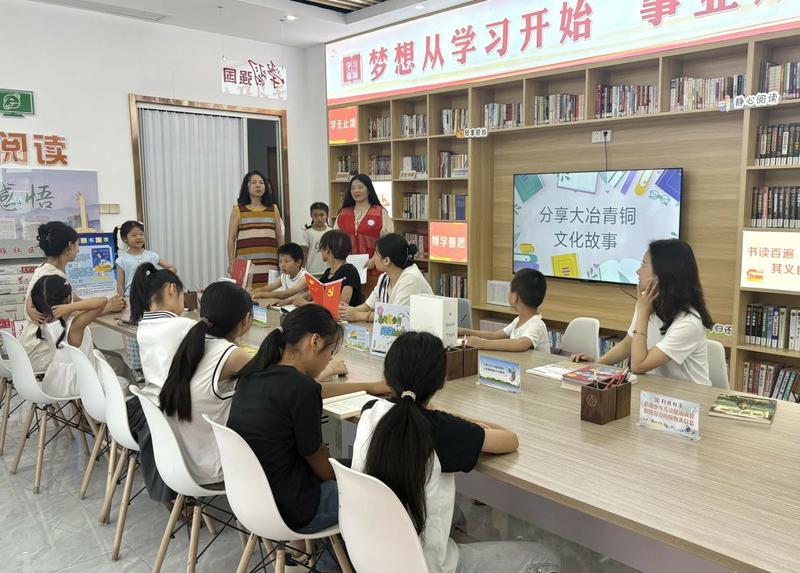 穿越千年的青铜之光,在湖北省大冶市金湖街道海雅社区书屋熠熠生辉。7月10日上午,一场别开生面的“传承千年青铜文明 共话大冶文化瑰宝”读书分享会在海雅社区书屋成功举办,吸引了社区居民,特别是亲子家庭热情参与。本次活动通过志愿者讲解、童声讲述、趣味互动等丰富形式,让沉睡千年的青铜文化在社区“活”起来,为居民带来了一场精彩纷呈的文化盛宴。