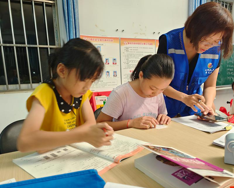 五年级的廖茜兮曾最怕写作文,如今却能用“首尾三明治”写作法在半小时内完成100字草稿。“原来,写作文这么简单啊!”她举着草稿纸的样子,让辅导工作队队员想起刚见她时咬着笔杆发呆的模样。一年级的廖小小,不仅在“一对一”指导下纠正了握笔姿势,还学会了用拼音给远方的父母书写短信。