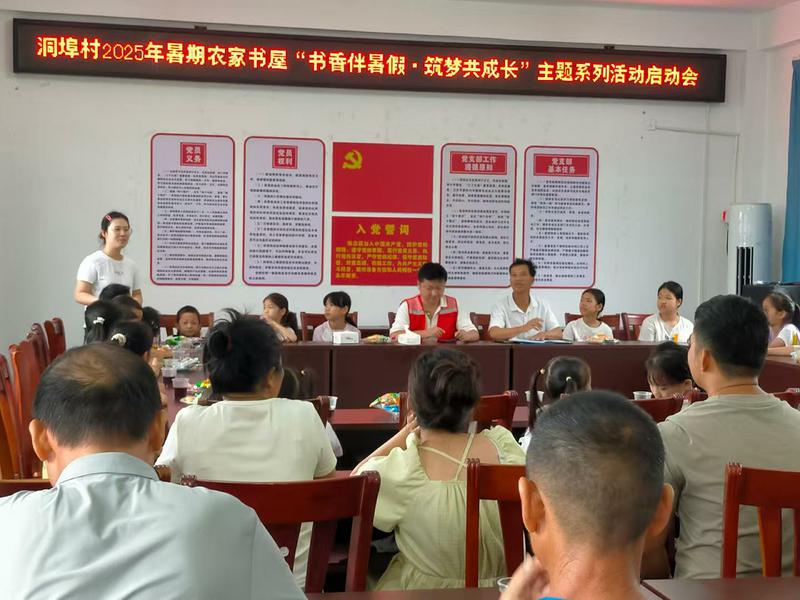 盛夏时节,书香为伴。为丰富青少年暑期精神文化生活,营造“爱读书、读好书、善读书”的乡村文化氛围,7月22日上午,广西崇左市龙州县下冻镇洞埠村2025年农家书屋“书香伴暑假·筑梦共成长”主题系列活动启动会在村委拉开帷幕。村“两委”和村支书助理、驻村工作队、大学生志愿者及30多名村内学生和家长代表齐聚一堂,共同开启充满书香的盛夏阅读之旅。