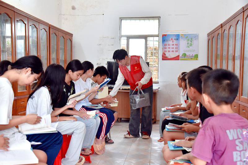 在书屋内,北海市老科协专家庞德彬为村民和养殖户带来了前沿的水产养殖技术知识;返乡大学生代展豪为孩子们传授朗诵技巧,并组织孩子们开展阅读分享与经典诵读游戏。