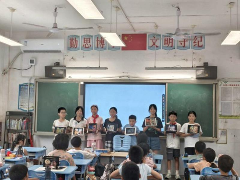 近日,湖南省长沙市望城区白箬铺镇光明小学迎来了一群特殊“老师”。中南大学“智启未来·艺路同行”暑期社会实践团的同学们,带着平板电脑和一份温暖的心意,走进这所宁静的乡村小学,为这里的留守儿童开展“ai艺术素养提升”暑期社会实践志愿服务活动,带来了一场融合科技与艺术的ai美术课。