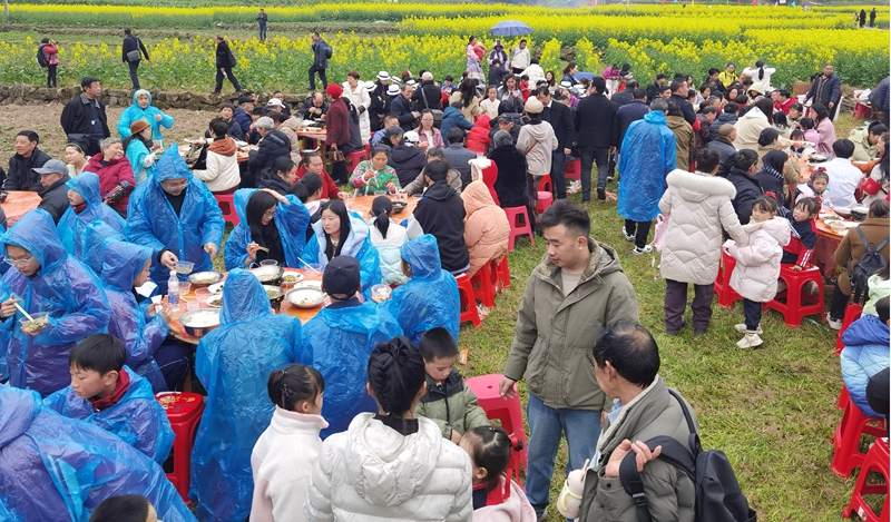 除了赏花,主办方还精心策划了“赏菜花,吃刨汤”特色活动,游客不仅能品尝到地道的农家刨汤宴,还能参与新鲜蔬菜采摘、农特产品展销等互动项目。种植大户黄祖文的50亩生态菜地成为热门打卡点,游客们争相购买新鲜蔬菜及当地的特色农产品,日均销售额轻松突破万元。