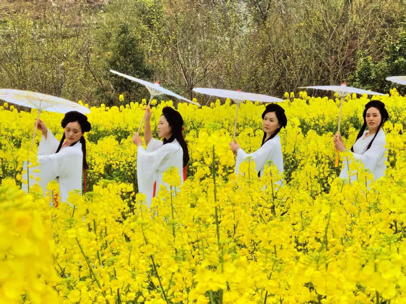 为提升游客体验,当地增设了休息区、茶艺表演等精细化服务,并组织“油菜花田守护小队”维护秩序,确保游客安全游览。谋道镇相关负责人表示,未来将结合季节性花卉资源,推出更多特色活动,让“赏花经济”持续助力乡村振兴。
