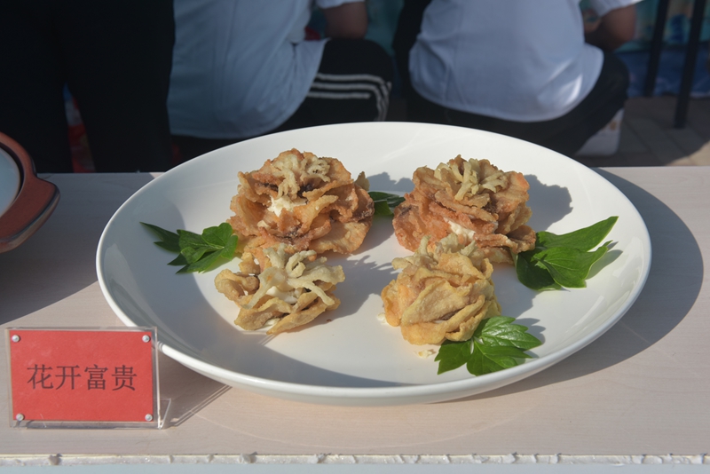 国宴丰华楼行政总厨李迎超精心雕琢的“鱼跃龙门”,以伊河鲂鱼为主材,鱼肉细腻如雪,淋上秘制酱汁后红亮油润,宛若金色巨龙腾空而起;洛阳陆浑旅游度假村厨师长贾未乐的参赛作品“牡丹花开富贵”则将雕刻技艺发挥到极致,整条花鲢鱼皮肉分离制成花瓣,辅以时令蔬菜摆盘,尽显中原饮食文化的雅致风骨。