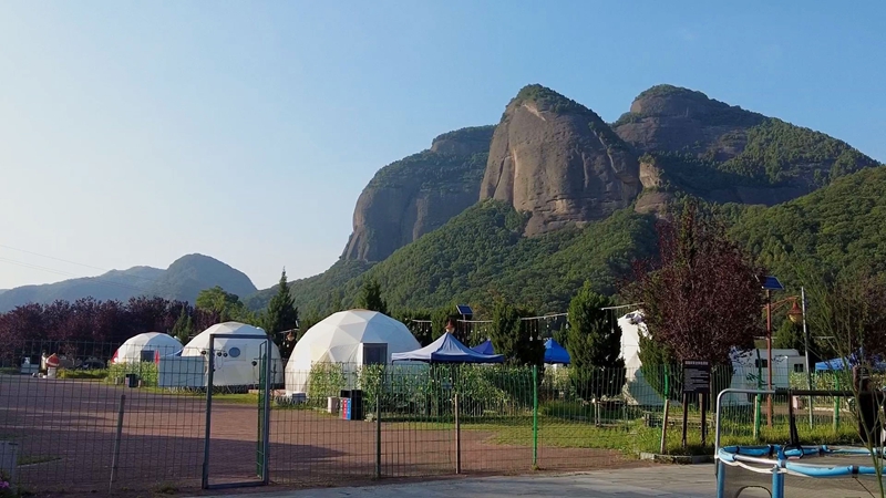 不远处,位于照金牧场腹地的星空露营基地,凭借800亩草甸风光和24小时开放政策,成为“微度假”首选。基地提供房车、野奢帐篷、球形帐篷三种住宿选择,还会为游客们组织不同的游玩活动,让游客们在这里体验童年的乐趣。