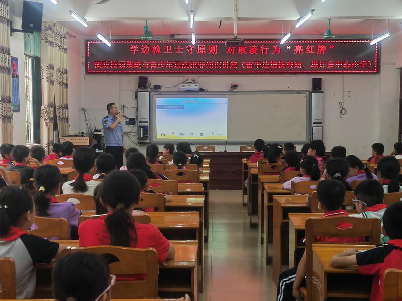随着暑假临近,2025年6月20日,广西崇左边境管理支队雷平边境检查站增强学生法治观念与安全意识,走进大新县堪圩乡中心小学,开展“法治宣传与安全教育进校园”活动,为辖区青少年健康成长保驾护航。