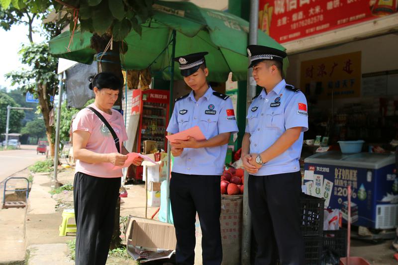 “叔叔阿姨,现在有些不法分子把毒品混进吃食里面,专门诱骗人尝试。大家在买菜、带孩子时,如果遇到陌生人推销免费试吃、特效提神食品,一定要多留个心眼,千万别轻易接受!民警在菜摊前向菜摊老板及买菜群众讲述如何辨别新型毒品及禁毒相关法律法规,重点讲解毒品走私、贩卖的法律后果,并通过真实案例警示群众远离毒品,切勿轻信“一试无害”的谎言。