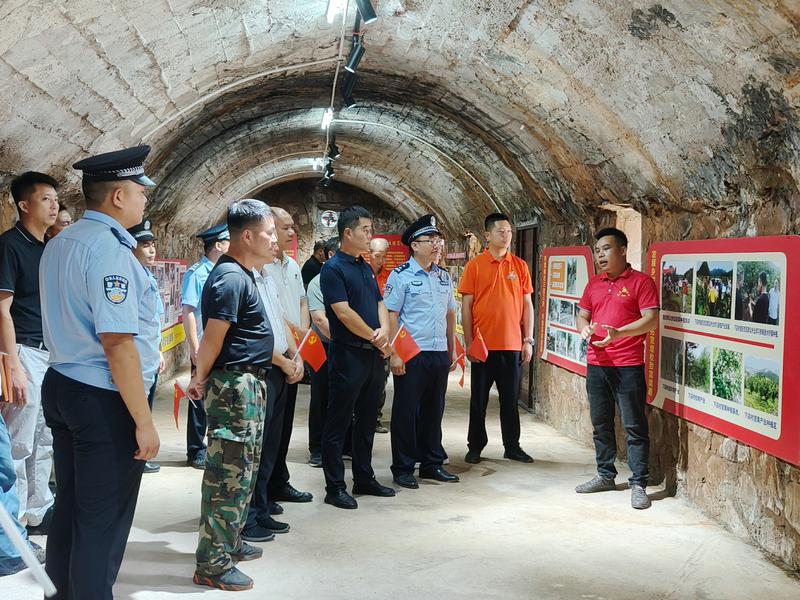 当天中午,警地党员怀着崇敬的心情参观了马胎度兀屯爱国主义教育基地,通过观看红色防空洞内图文并茂的珍贵资料,聆听边疆红色故事,了解寨安乡马胎屯、度兀屯的发展变化,在绚丽风光中忆苦思甜,感受在中国共产党的领导下,边疆人民顽强奋斗,不断取得建设、改革的重大胜利。